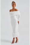 Detay: Omuzdan açık, kollar ve etek ucunda kürk detaylı